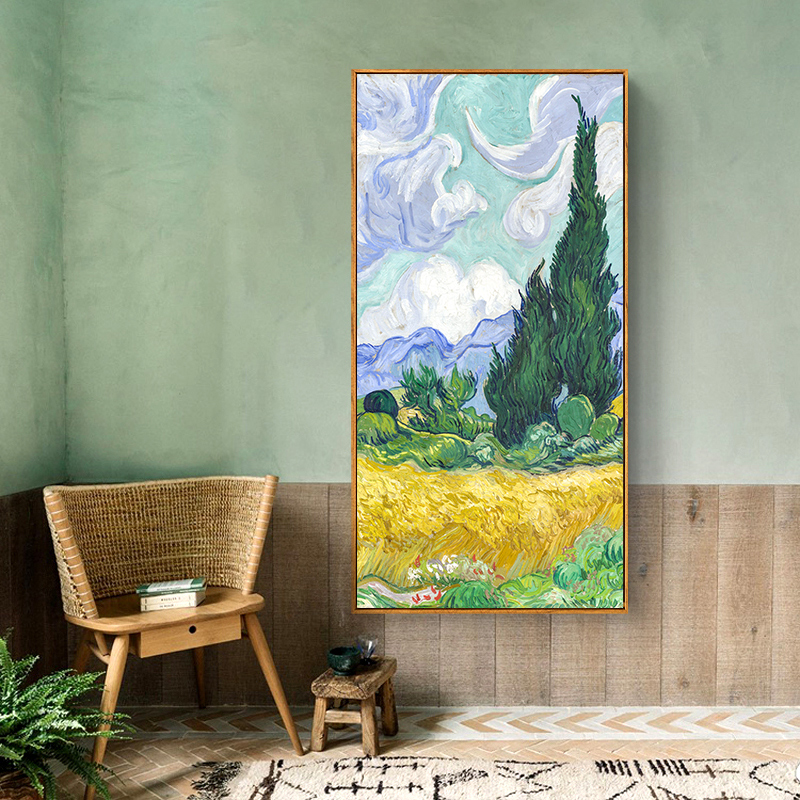 Van Gogh decorative painting Pastoral style landscape Home entrance decorative painting Vertical version of the aisle Corridor hanging painting Mural oil painting