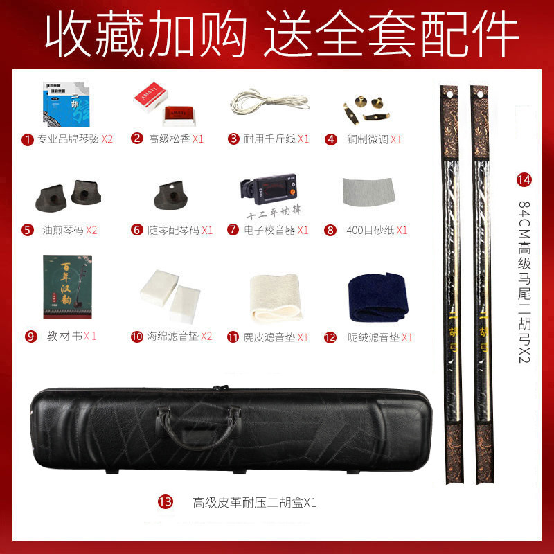 Han Yun erhu mahogany middle hu erhu playing solo professional big tube erhu musical instrument factory direct selling huqin