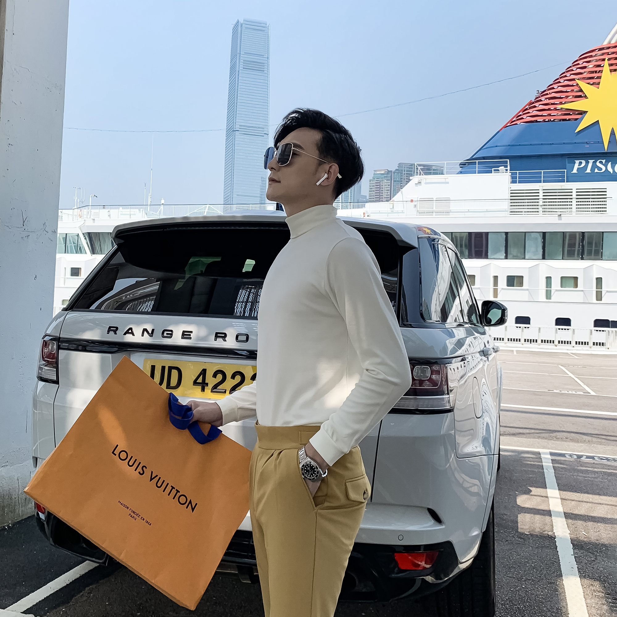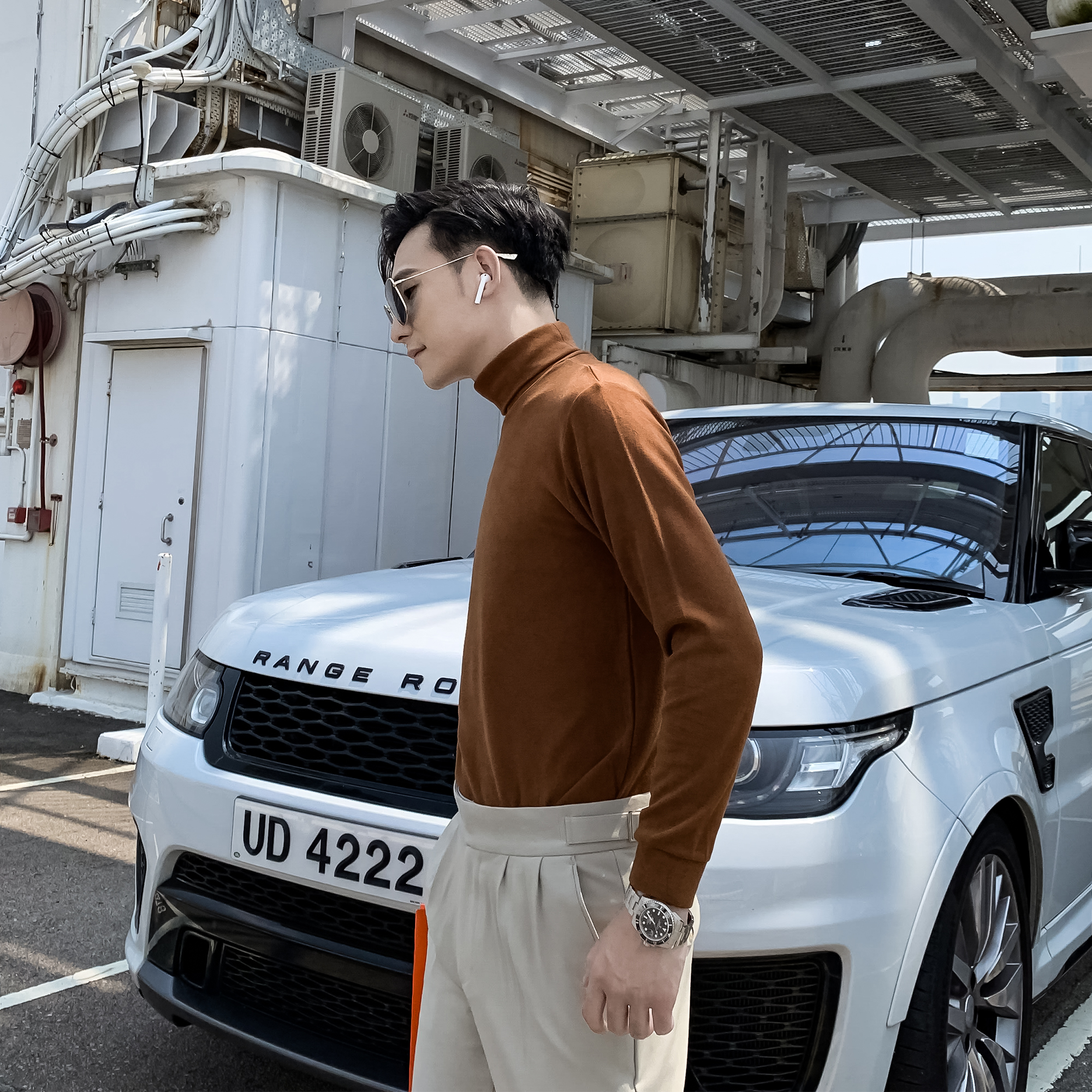 (DAIO MENS) Korean men's bottoming brushed autumn and winter high-neck solid color knitted sweater slim bottoming shirt tide