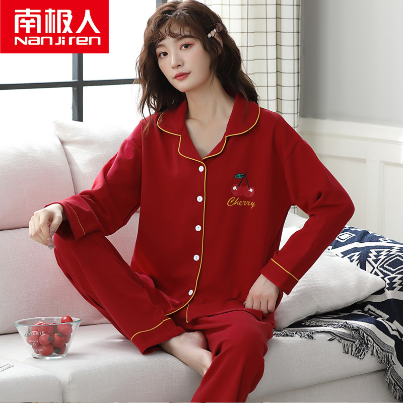 Antarctic red pajamas Women's spring and Autumn pure cotton long-sleeved cute wedding bride's year of life home suit suit
