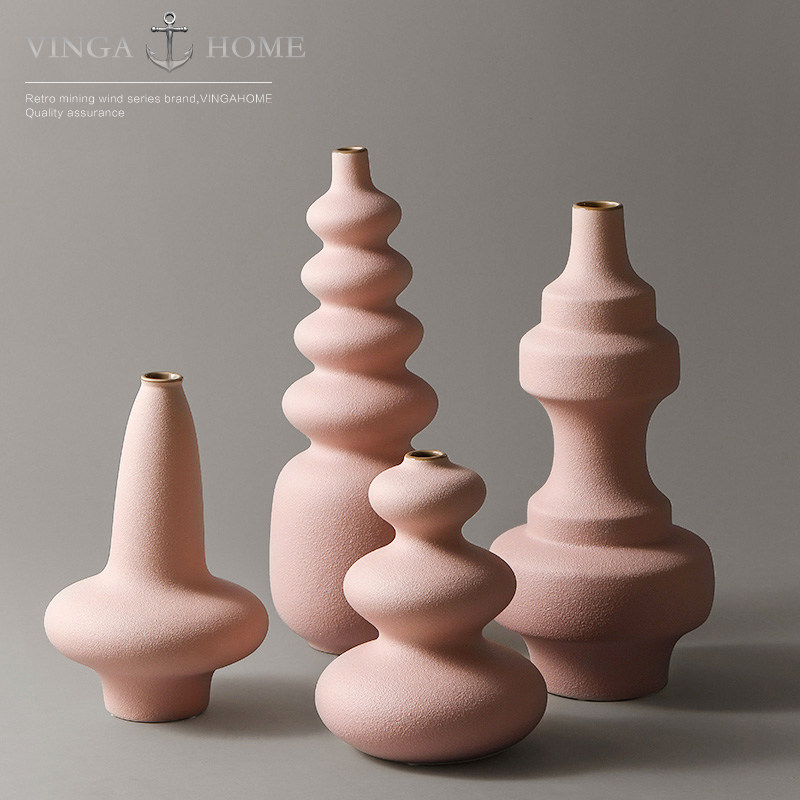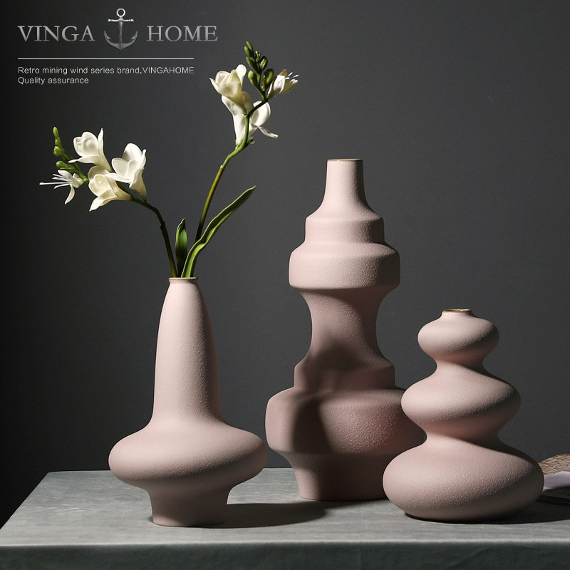 Nordic art ceramic small mouth vase decoration designer living room dining room model room flower soft decoration decoration