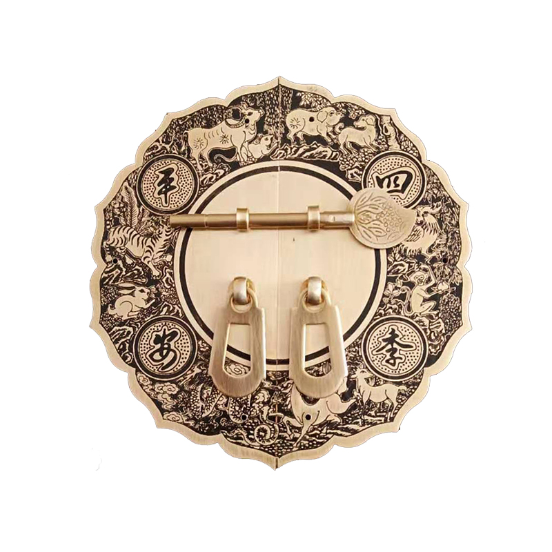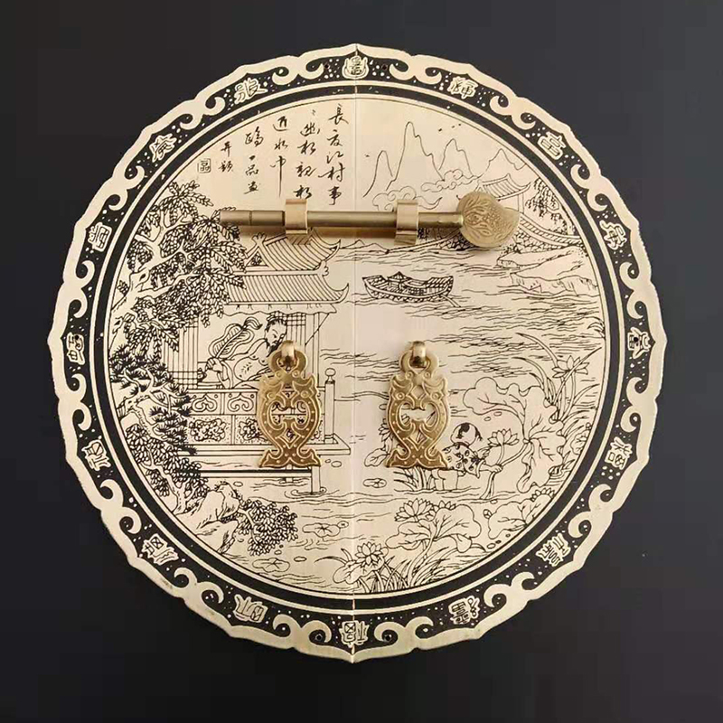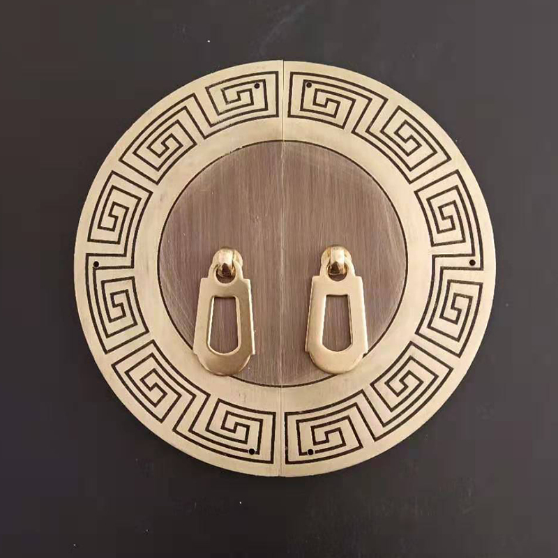 Chinese vintage furniture copper accessories pure copper handle whole closet cabinet door Four seasons Ping An fu character round back tattooed full copper handle