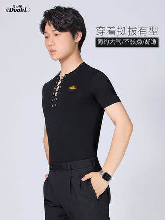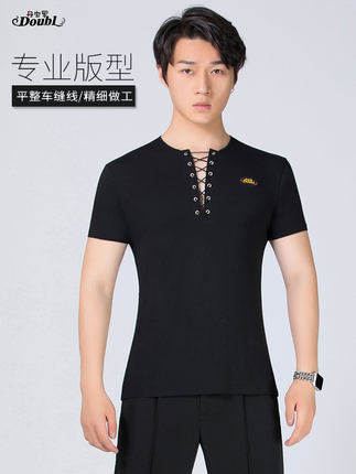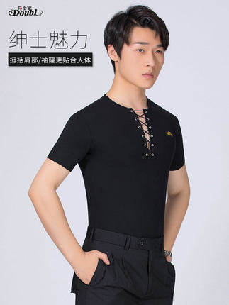 Dampao's new men's Latin dance short sleeve blouses national standard practice for social dance Moden dance T-shirt