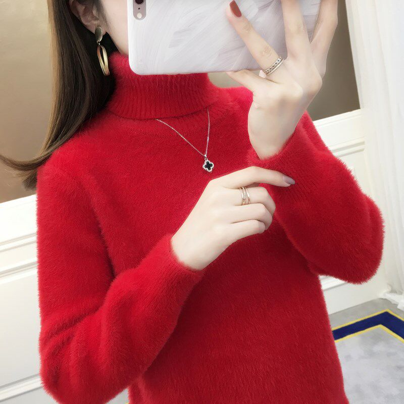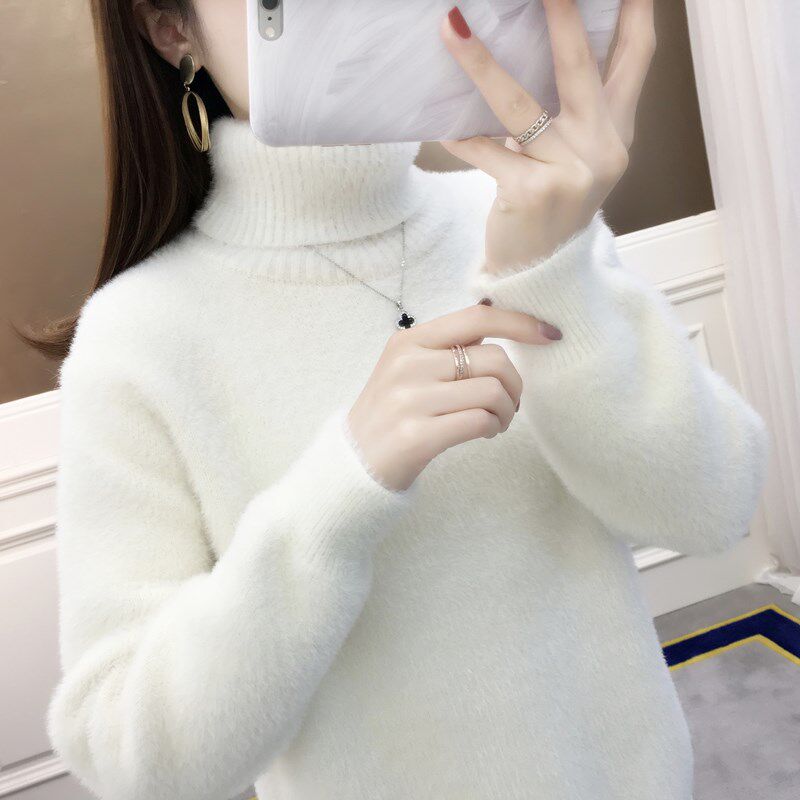 Turtleneck sweater women's 2021 new autumn and winter thickened warm imitation mink wool pullover loose outside wear women's base shirt