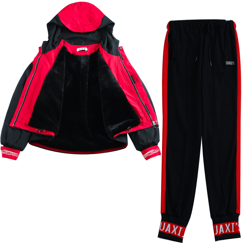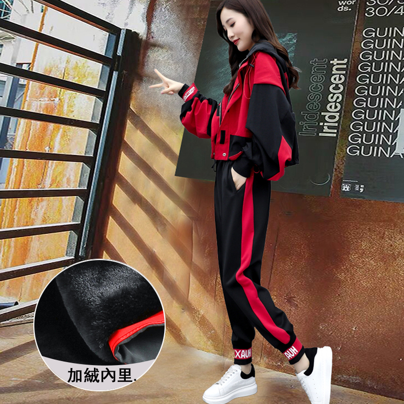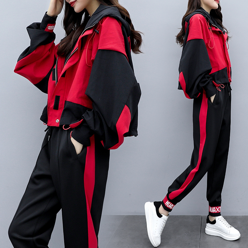 Red Fashion Goddess Van Suit Europe Station Sweatshirt Casual Minus Age Foreign Pie Two Sets Matching Spring Autumn Clothing