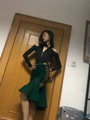 Amanda dance BLINGC new Latin dance women's long sleeve top dance jumpsuit off-the-shoulder sexy versatile