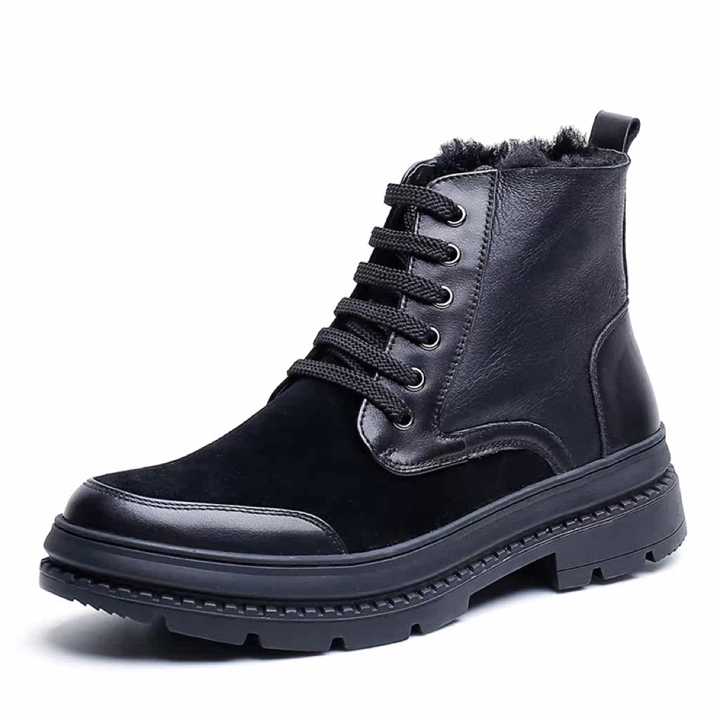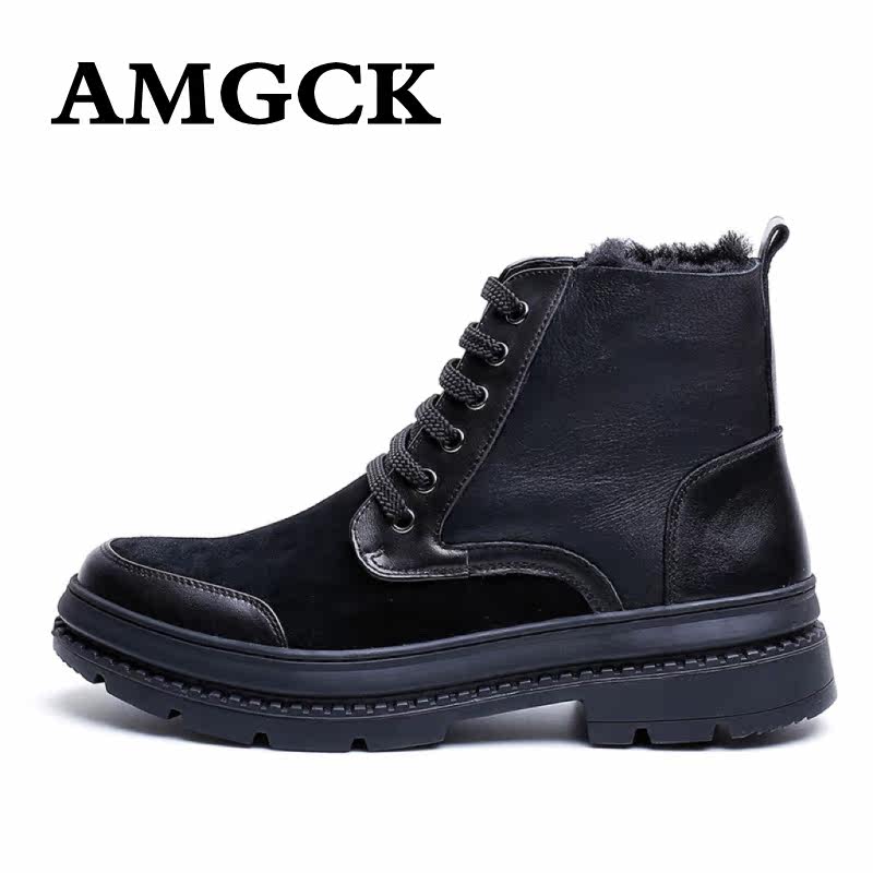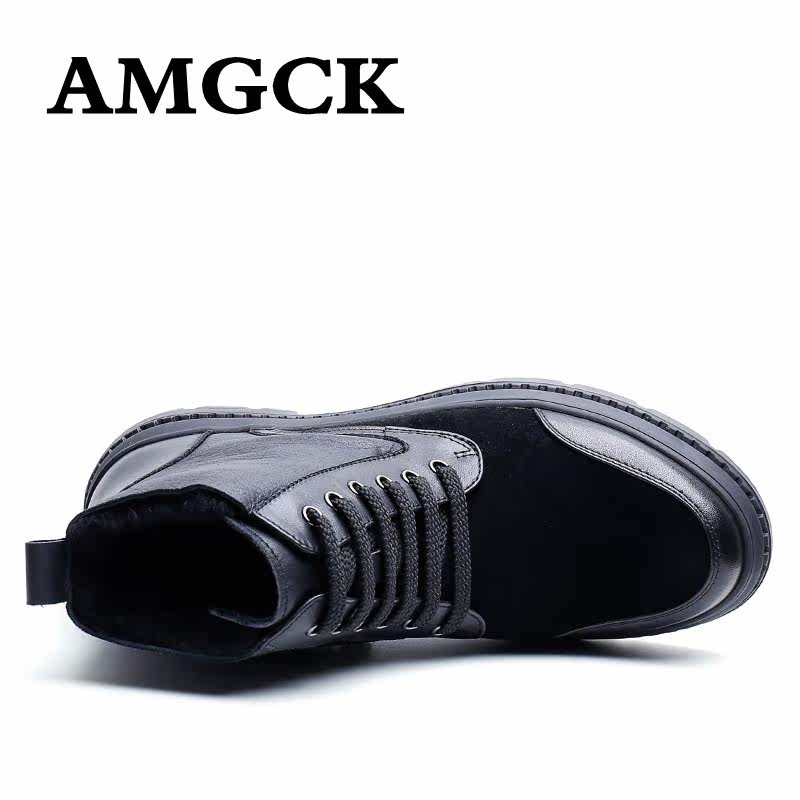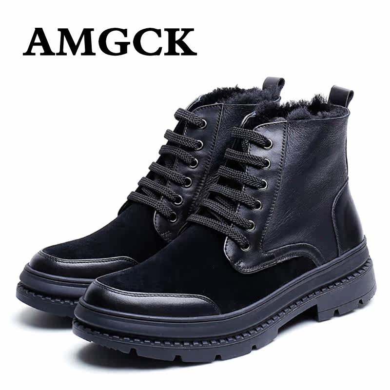 AMGCK plus velvet thick bottom male boot lamb fur integrated snow boots genuine leather warm high cylinder shoes Hong Kong