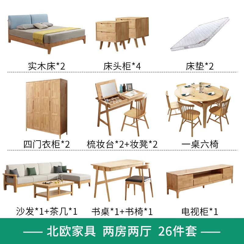 All Lush Nordic Solid Wood 1 5m 1 8 m Double Man Bed Wardrobe Bedroom Living Room Dining Room Table Full House Furniture Combination Suit