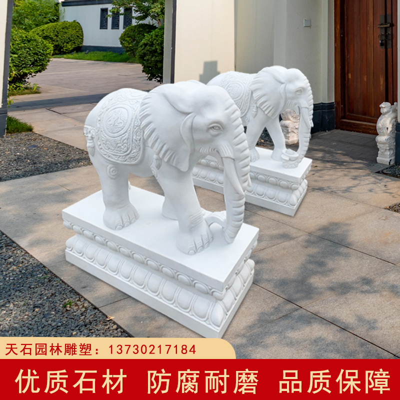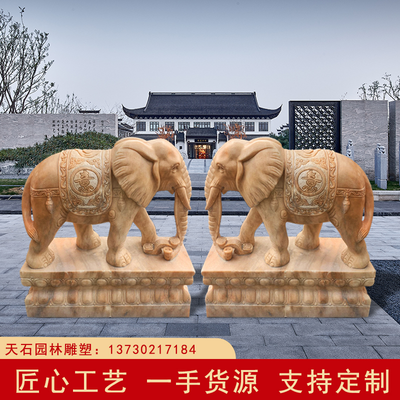 Stone Carving Elephant pair Han Baiyu Feng Shui Elephant Green Stone Door Mound Stone Elephant Courtyard Suction property Town Villa Doorway swaying pieces