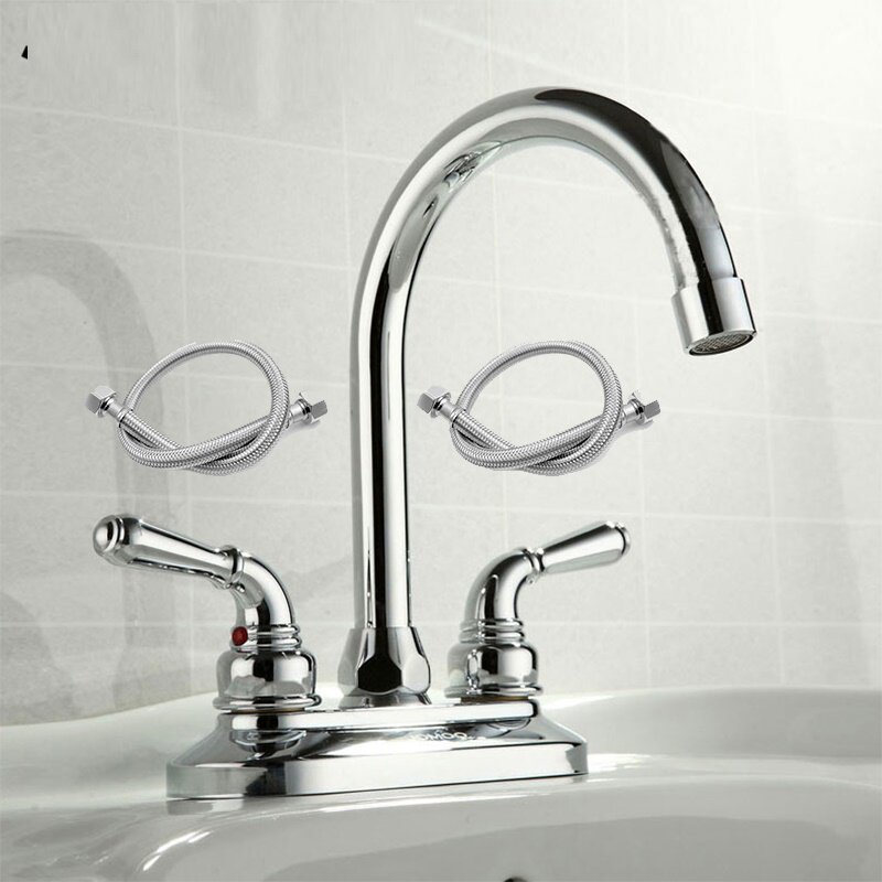 Jiumu old-fashioned ceramic basin faucet full copper double-handle double-hole washbasin hot and cold faucet X22003 2203-249