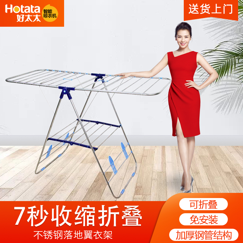 Good wife floor drying rack indoor folding stainless steel drying rack home balcony portable drying quilt shelf