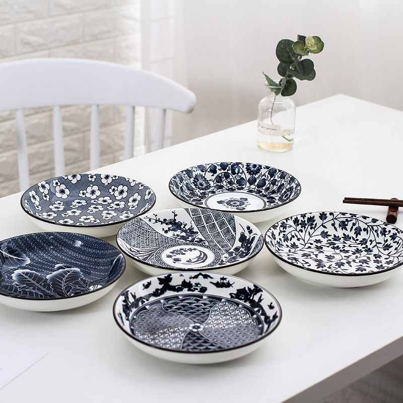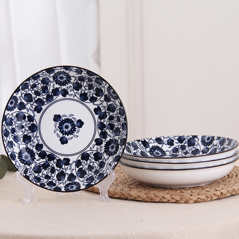 TM-4 packs of 8-inch blue color spring and autumn plates TM-4 packs of 7-inch blue color blue painted plates TM-4 packs of 8-inch blue color blue painted plates TM-4 packs of 7-inch blue color spring and autumn plates