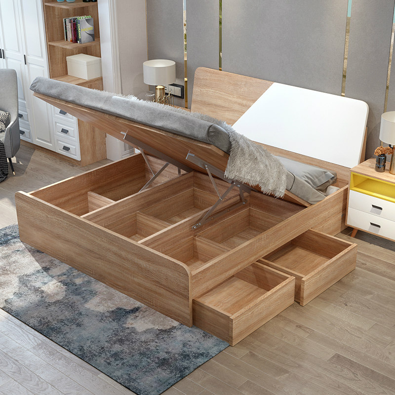Nordic plate bed 1 8m storage contains 1 5×2m bedroom furniture board combination package with double high box bed