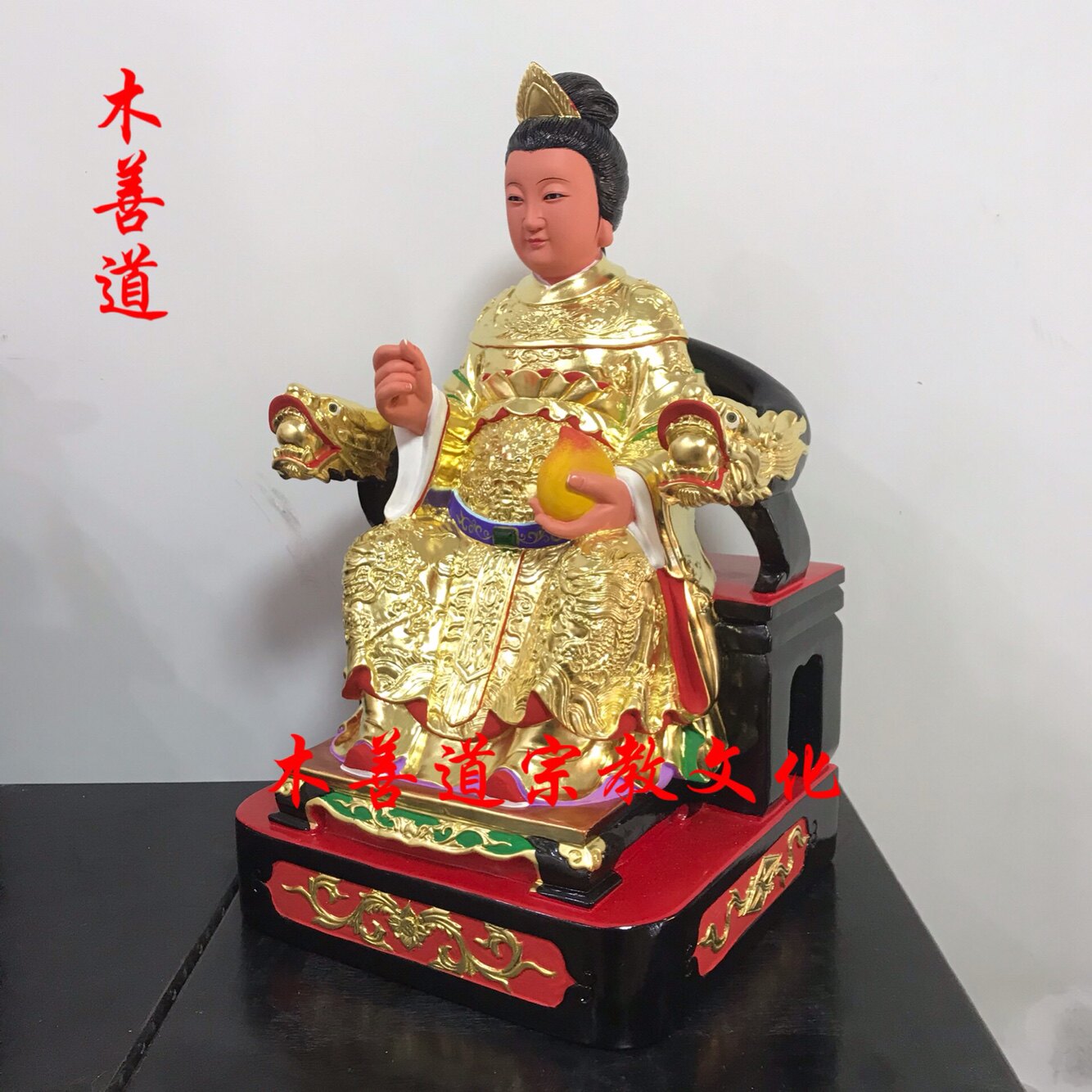 The wooden statue of the king mother of the wooden girl Yao Qiu Golden Mother Changwood fine stamp 48 cm