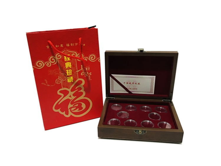 ten Loaded Universal Commemorative Coins Collection Wooden Box 27MM Raw Xiao Coins 70 Years Coins Rat RMB10 Coin Protection Box Customizable