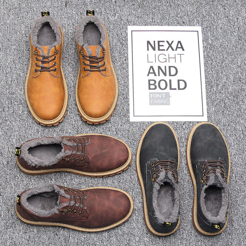 Winter cotton shoes men's warm plus velvet thick bottom men's shoes leather shoes casual Martin boots short boots Korean version trend snow boots