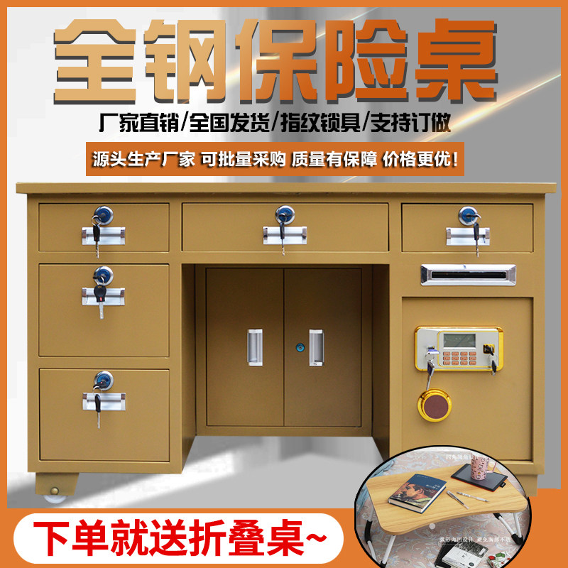 All steel safety table drawer desk with safe home desk integrated large coin-operated finance desk safe