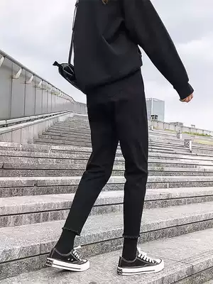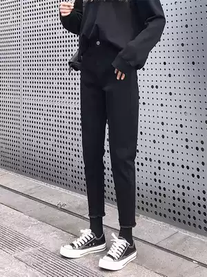 South Korea 2021 Spring and Autumn New Loose Jeans Women's Roof Pants High Waist Slim Stretch Nine Feet Haren Pants