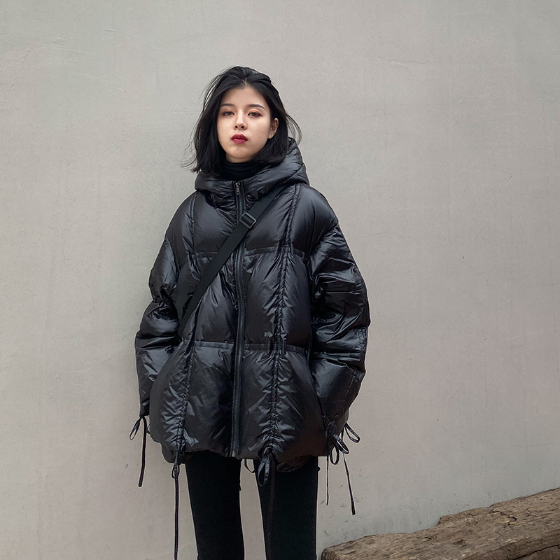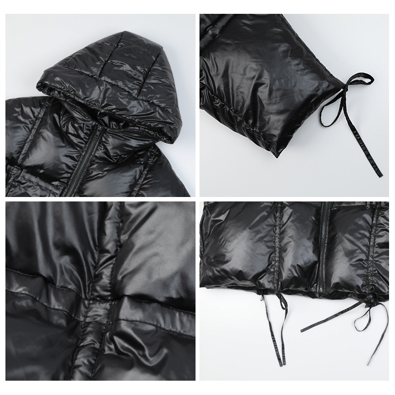 CHICVEN Anti-cold and warm black Lianhood 90 white duck suede down clothes lady dress with wind bread to coat winter