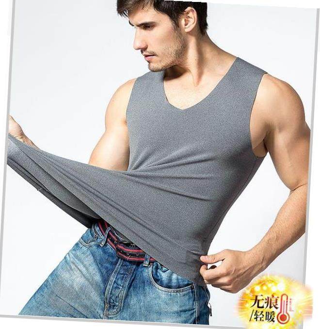 Incognito velvet autumn and winter De Rong De Rong men's hurdling vest men's warm undershirt top white slim self-heating catty