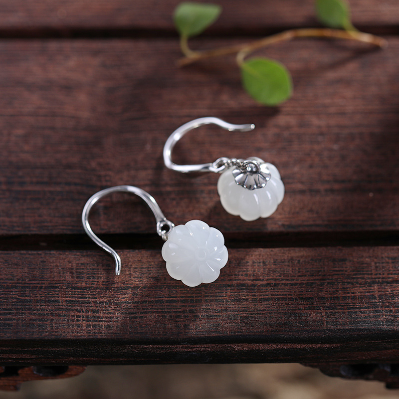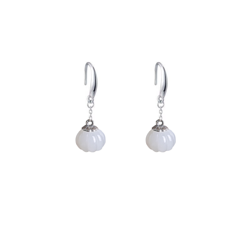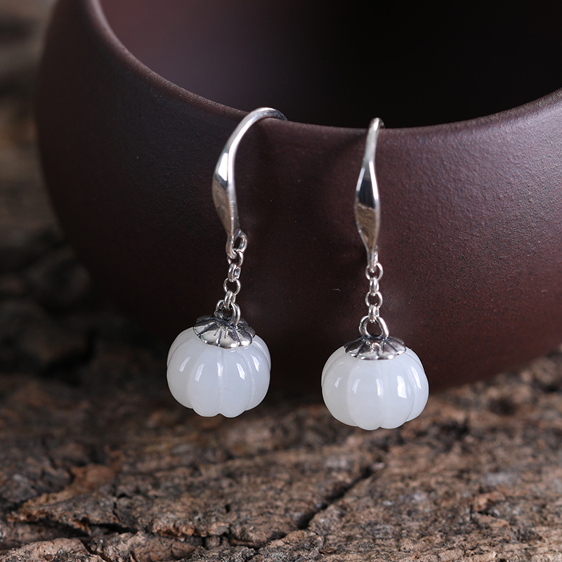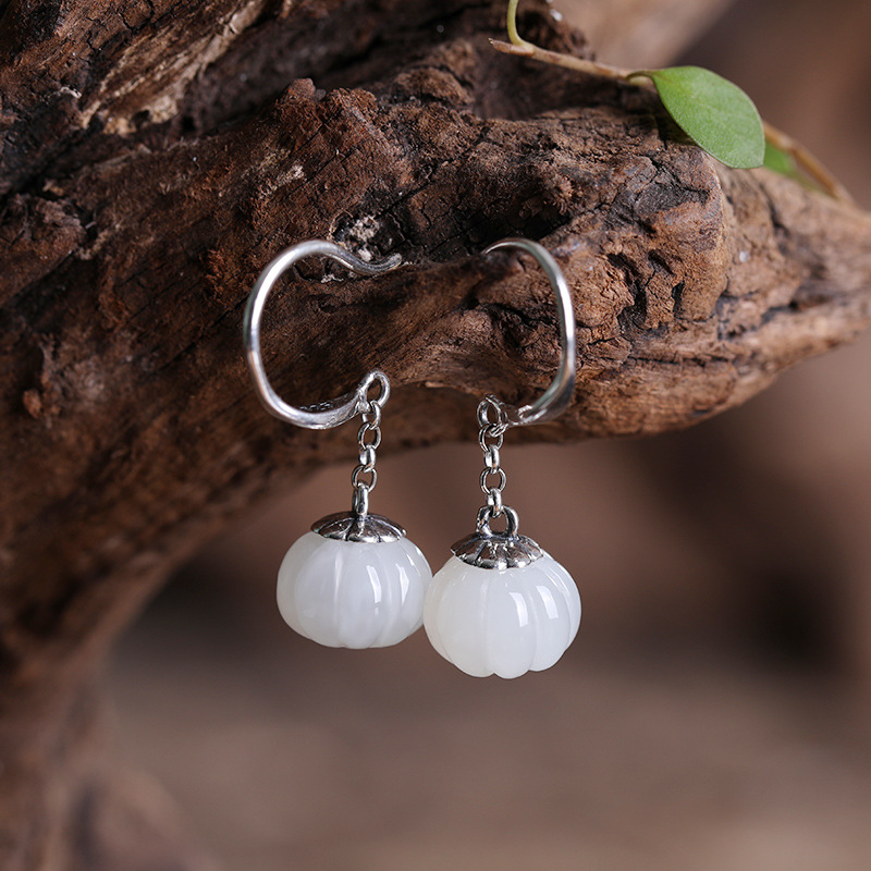 Xi Ranxuan S925 pure silver ear decoration natural and Tian Yuyu pumpkin ear crash female retro earring temperament