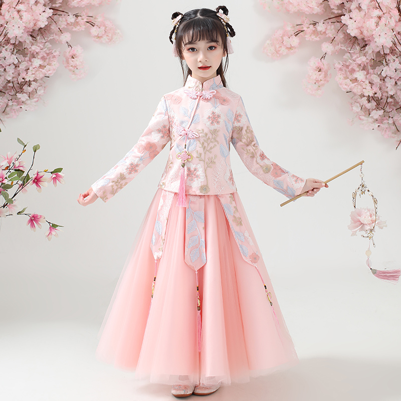 Children's Hanfu Girl Spring and Autumn Super Fairy Children's Clothing Chinese Style Ancient Clothing Spring Dress Little Girl Cheongsam Girls Tang Suit Dress