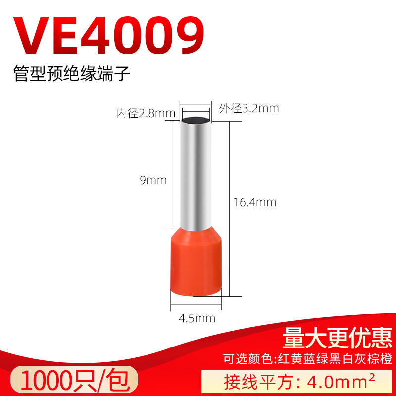 E4009 European cold-pressed terminal Pin-shaped small black clip VE tube type pre-insulated terminal block 4 square copper 1000pcs