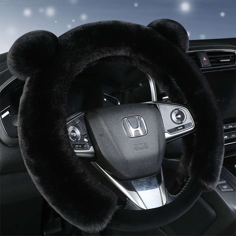 Winter car steering wheel cover short plush car handlebar cover tide cute cartoon warm general-purpose D-type lady's handlebar set