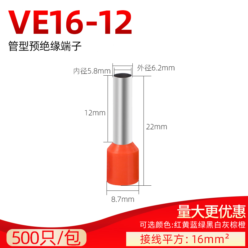 E16-12 cold pressure terminal needle shaped small black clamp VE tubular pre-insulated wiring terminal 16 0 square red copper 500 only