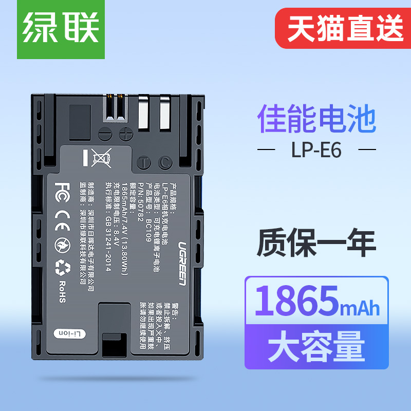 Green connected camera battery 6D digital LP-E6 Canon EOS 60D 70D 5D4 5D3 5D2 6D7D