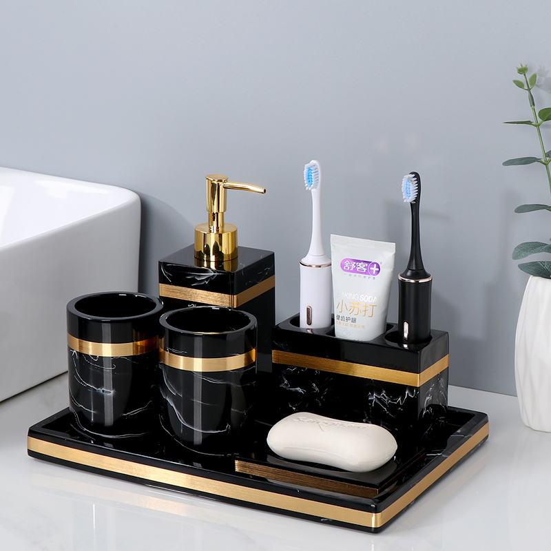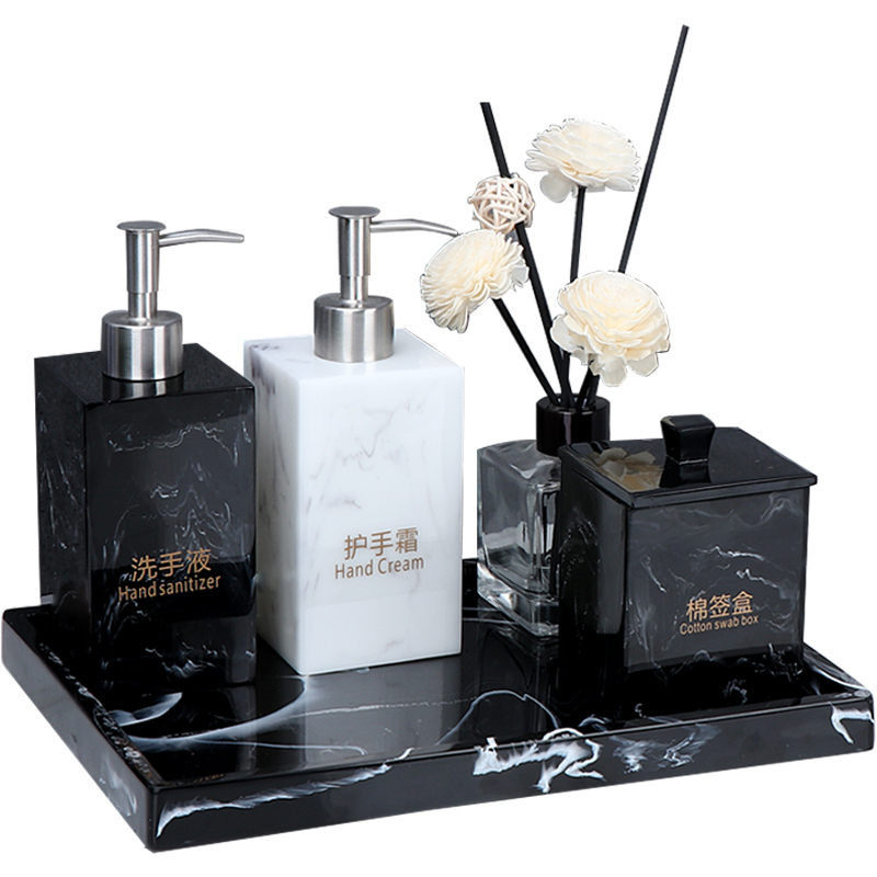 Washing table six-piece set ink white wash table six-piece set ink black black white bottle white cotton aromatherapy white big support medium black white bottle white storage cup aromatherapy white big support Phnom Penh ink black wash combination A