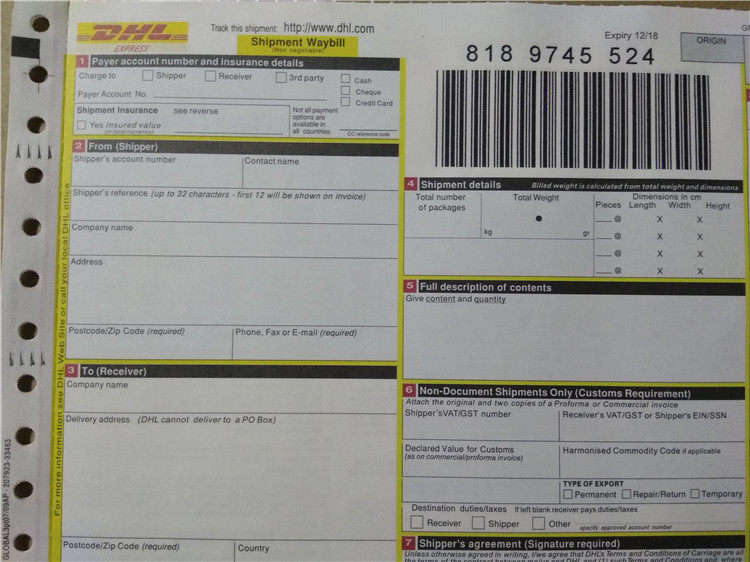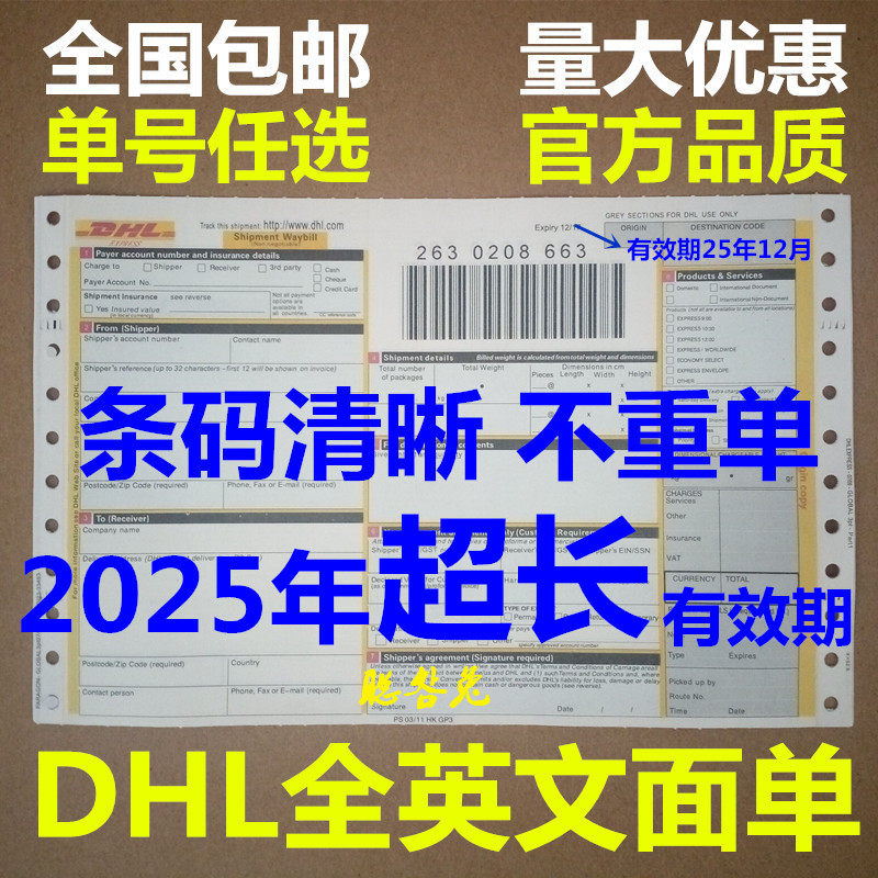 New DHL face single DHL waybill DHL express waybill DHL full English face sheet international express waybill side note