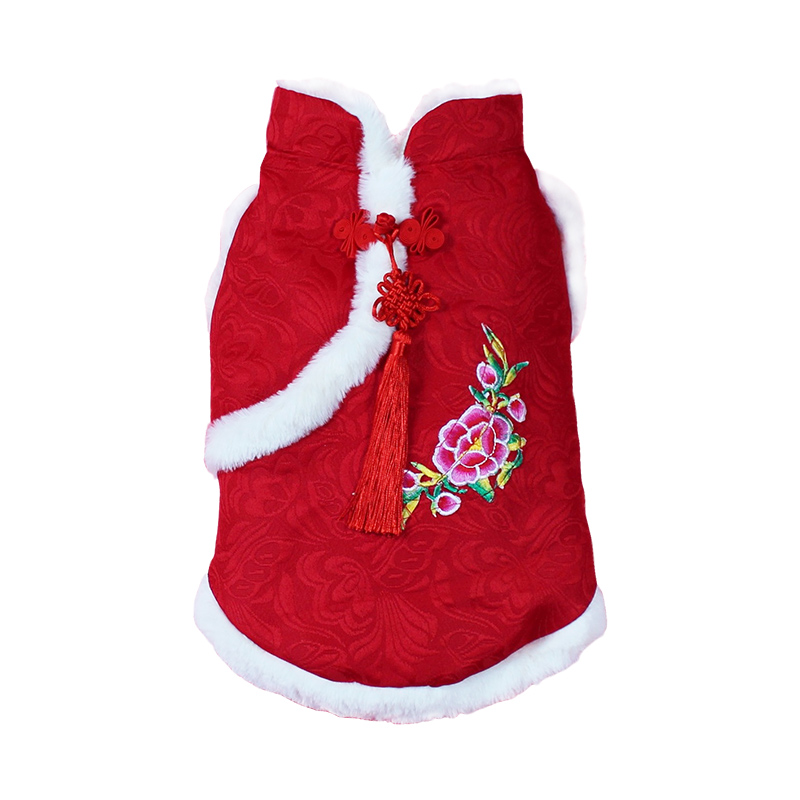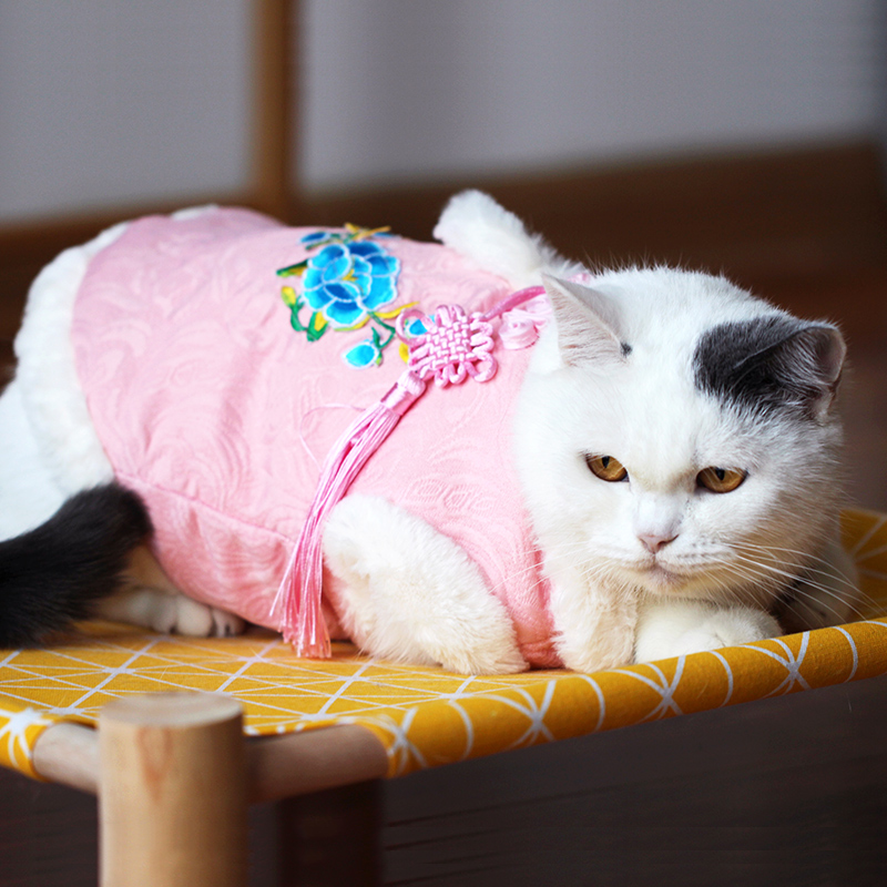 Cat clothes plus velvet Tang suit cheongsam autumn and winter clothes pet cat blue cat Garfield New Year clothes winter cotton coat