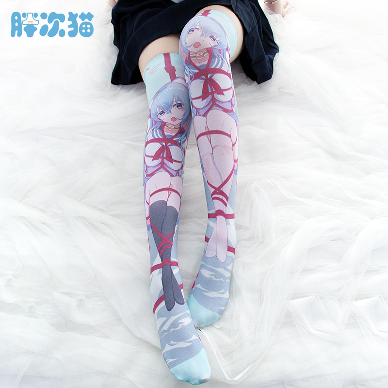 Original printed knee socks Japanese girl velvet thigh socks pain socks