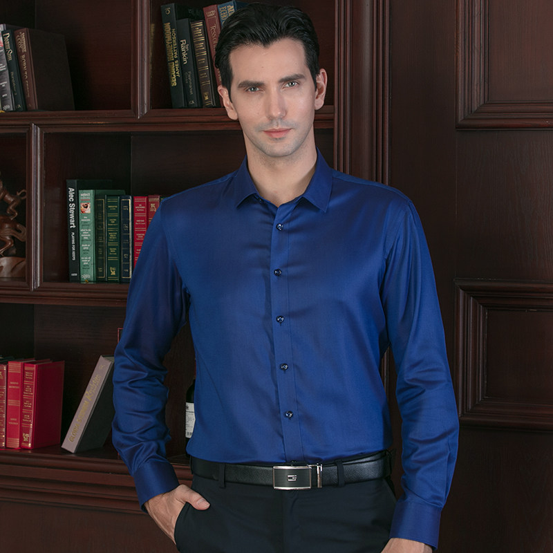 Yagal men's long sleeve shirt business casual workout pure Tibetan green square collar professional bifacial play DP free of ironing shirt