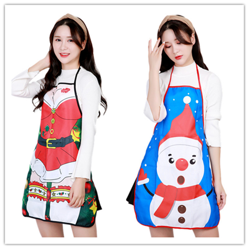 Christmas apron cartoon women's clothes men's overalls Santa Claus apron anti-oil adult children's holiday supplies