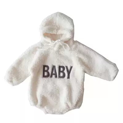 INS Wind Autumn and Winter plus velvet warm baby cute fluffy baby jumpsuit men and women baby hooded bag fart climbing suit