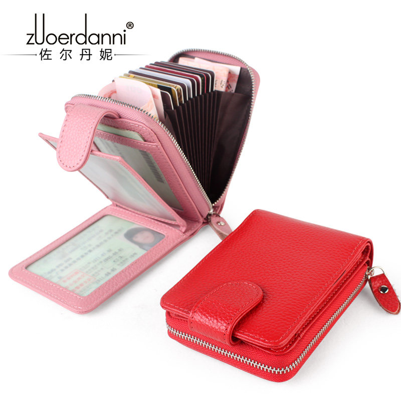 Zoltan Genuine Leather Woman Wallet Multi-Position Multifunction Cow Leather Card Bag Zero Money Cutting Sleeve Pull Chain Organ Woman Wallet