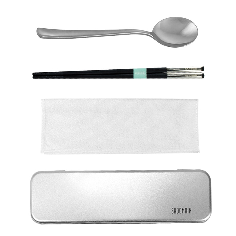 Taiwan Senderman portable Japanese style stainless steel cutlery chopsticks spoon suit single student two sets containing box