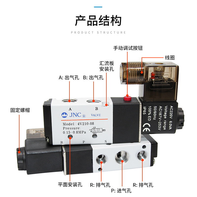 JNC pneumatically 24v solenoid valve set 220v everclosed fitting 4v210-08 air valve 12v Two-position five-way reversing valve