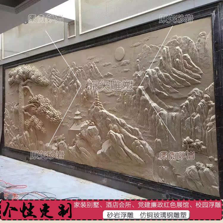 Artificial sandstone relief custom-made sandstone mural villa exterior wall decoration relief board shadow wall landscape welcoming pine
