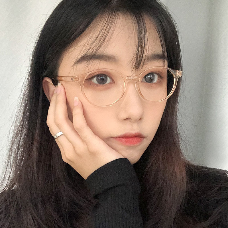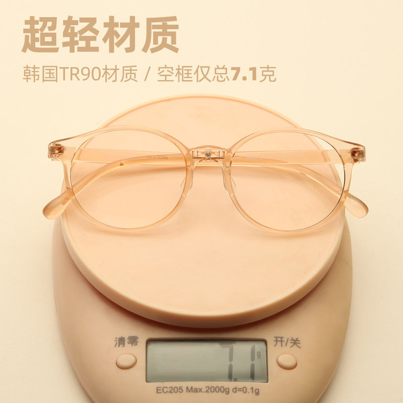 Transparent frame glasses frame female ins small face high myopia apricot retro round plain face small frame men's small glasses TR90 ultra-light