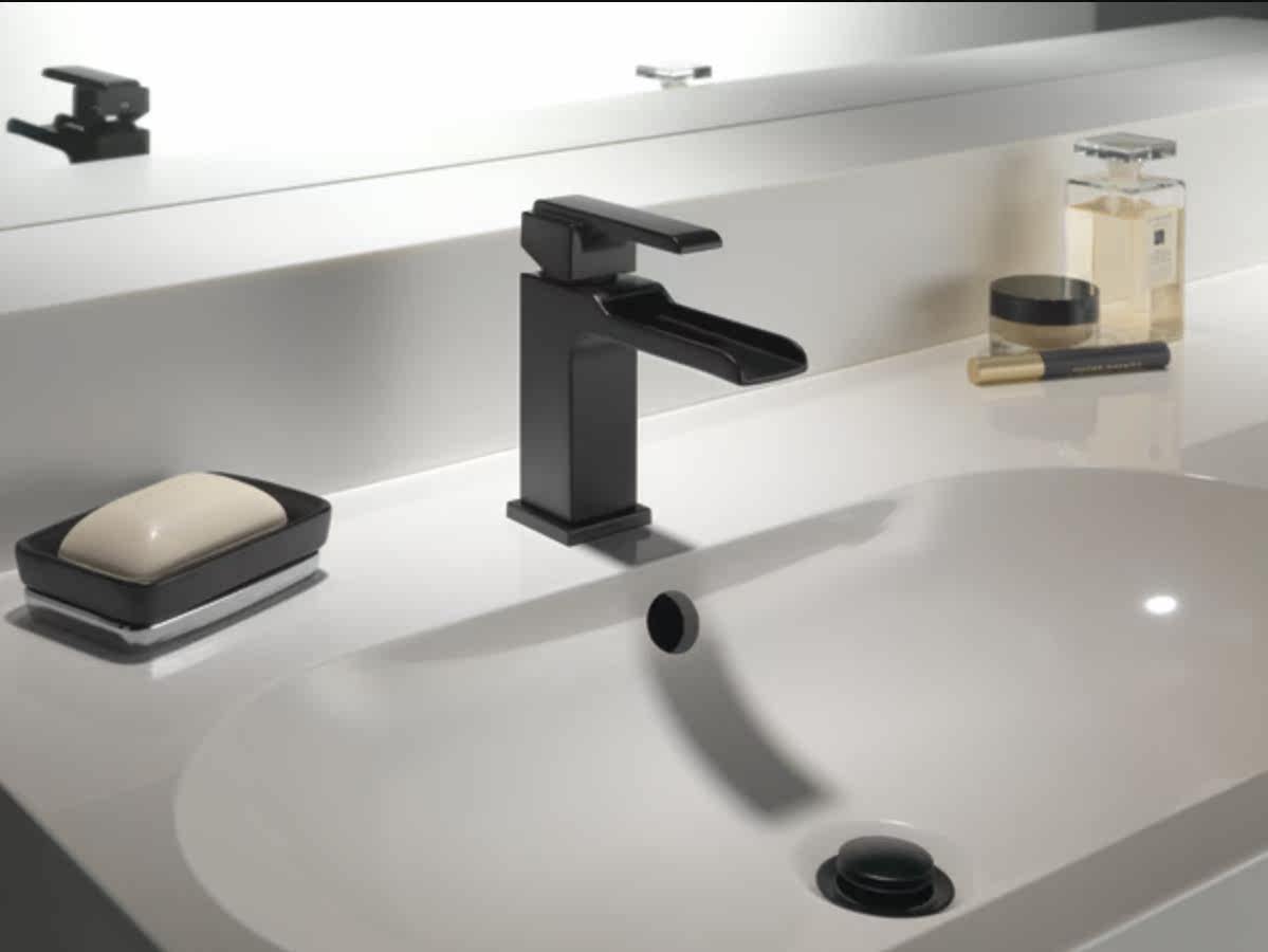 DELTA DERDA Deya single handle single hole black art faucet storm strikes BL waterfall