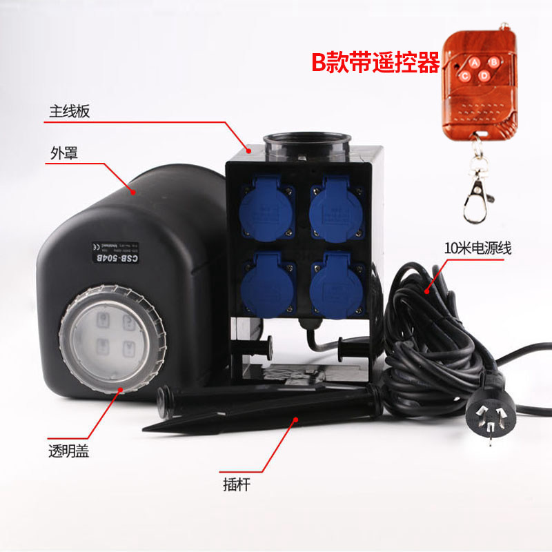 Direct plug - in simple four socket outdoor wiring box with remote control four socket