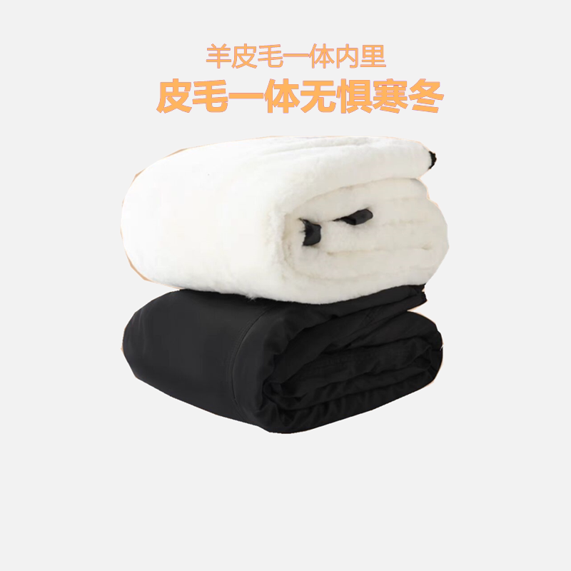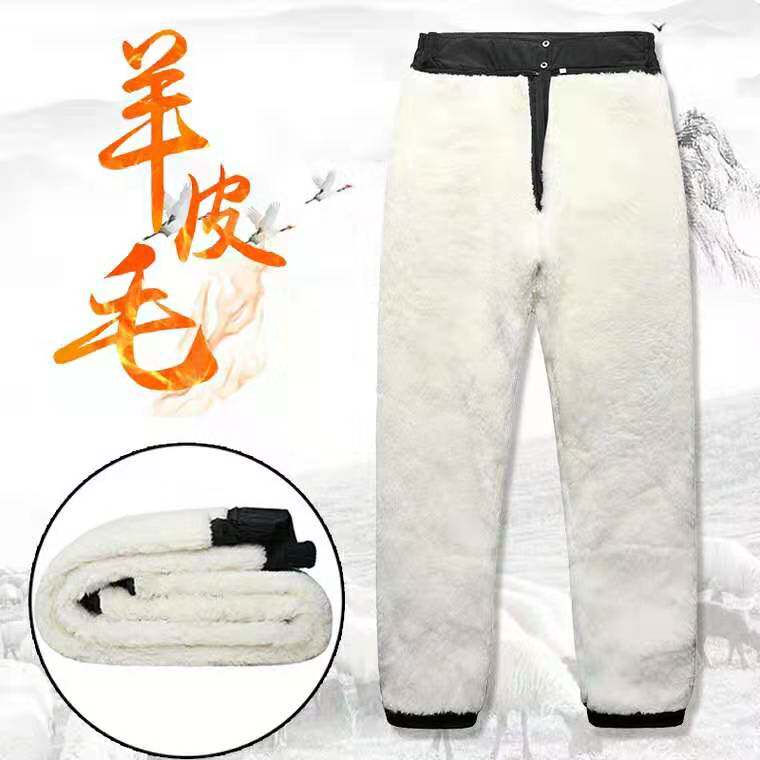Winter pure lamb fur integrated cotton pants for aged men and women wool pants gush thickened with high waist warm and cold-proof leather pants-Taobao