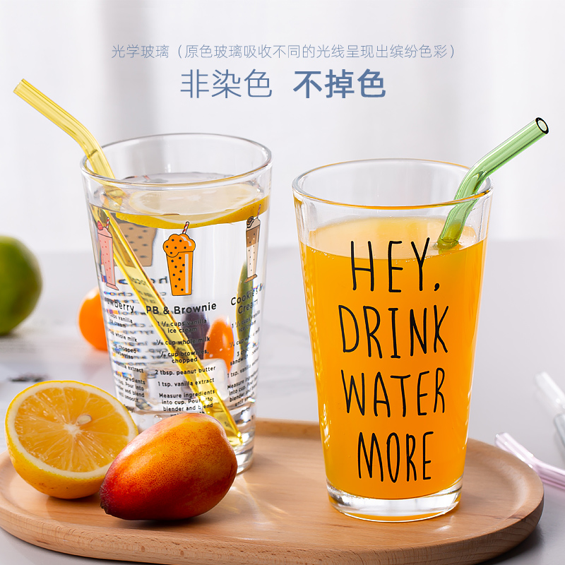 ins wind glass straw non disposable heat resistant pearl milk tea juice heat resistant water glass color elbow drinking tube