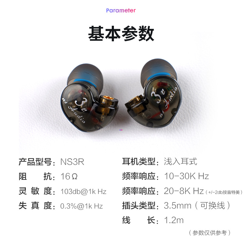 Natural sound NS3R light-in-ear type swapped line high sound quality hifi fever game listening to sleep headphones