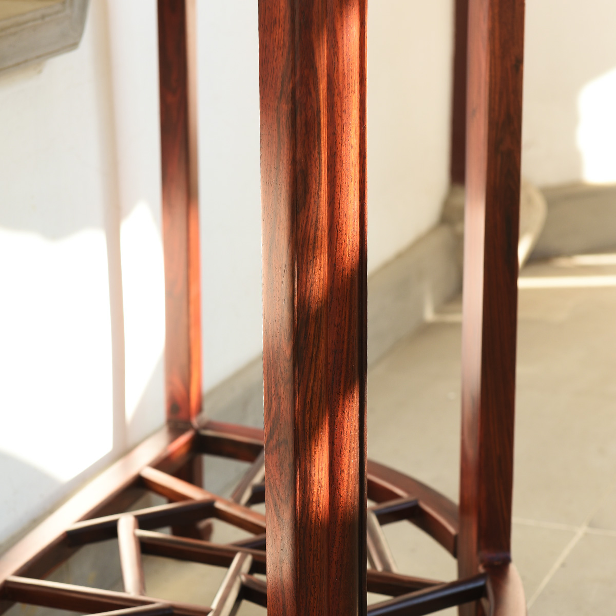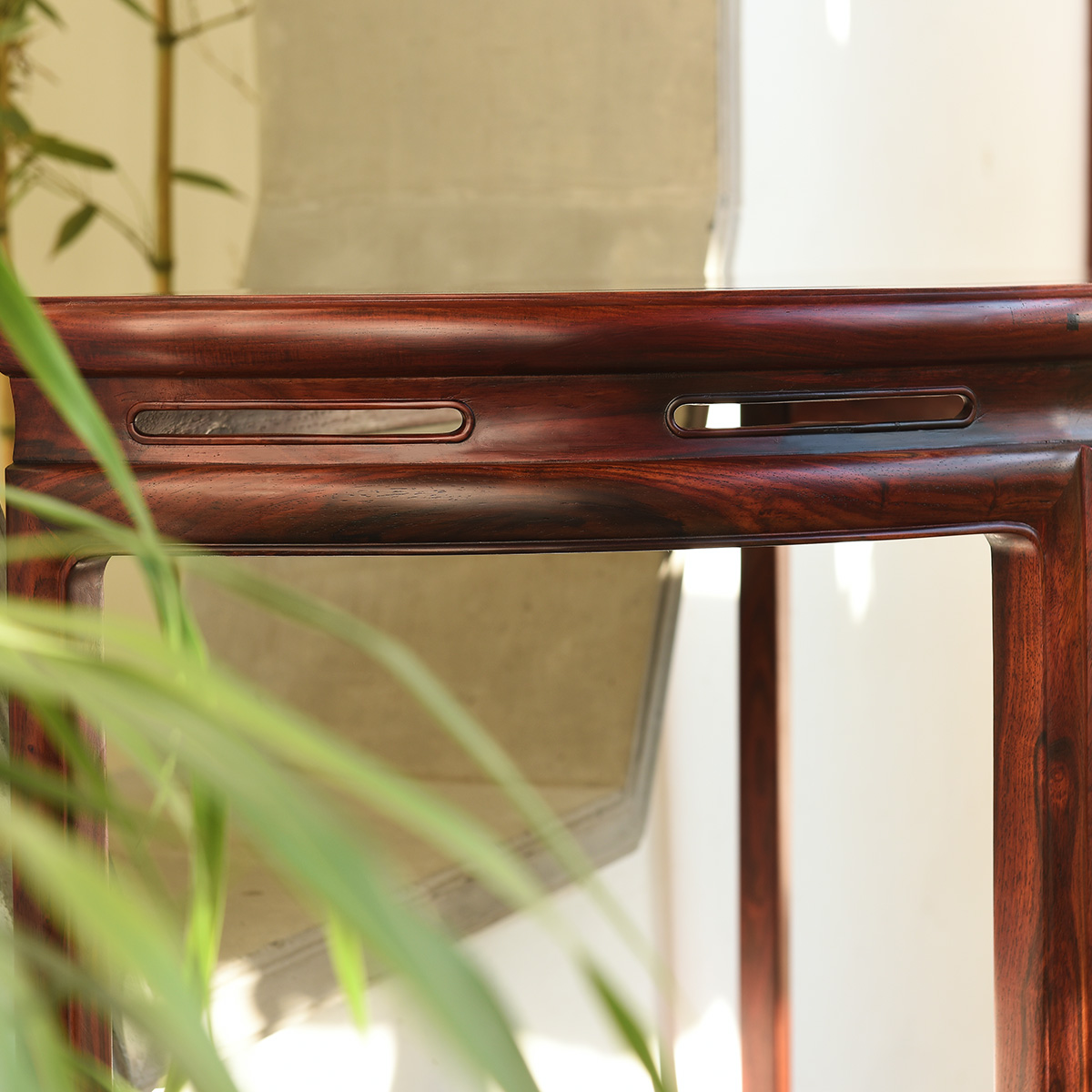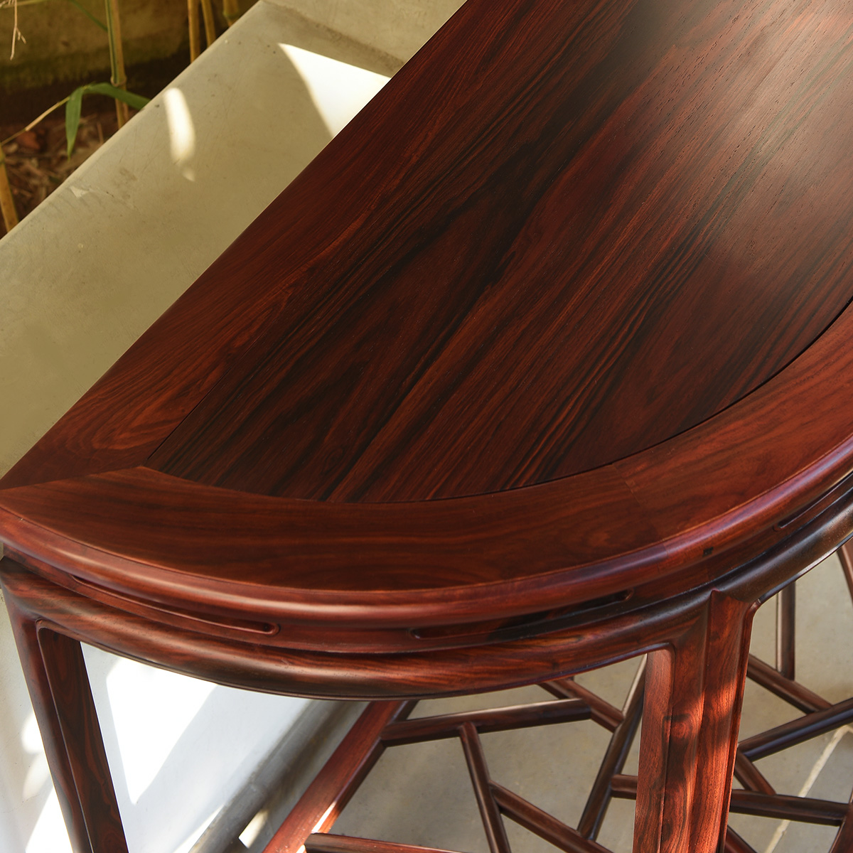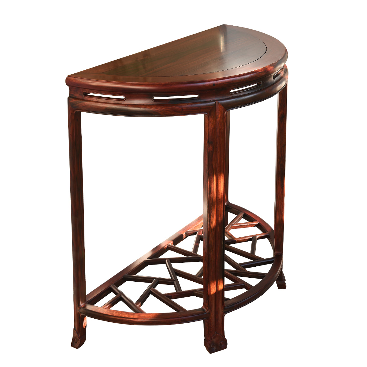 Susuliao big red rosewood semi-round table Ming-style porch table mahogany half platform against the wall side table Su Zuo flower stand