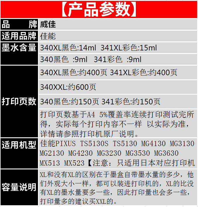 PG-340XXL BLACK 21ML INK A4 5%COVERAGE ABOUT 600 PAGES PG-340XL BLACK 14ML INK A4 5%COVERAGE