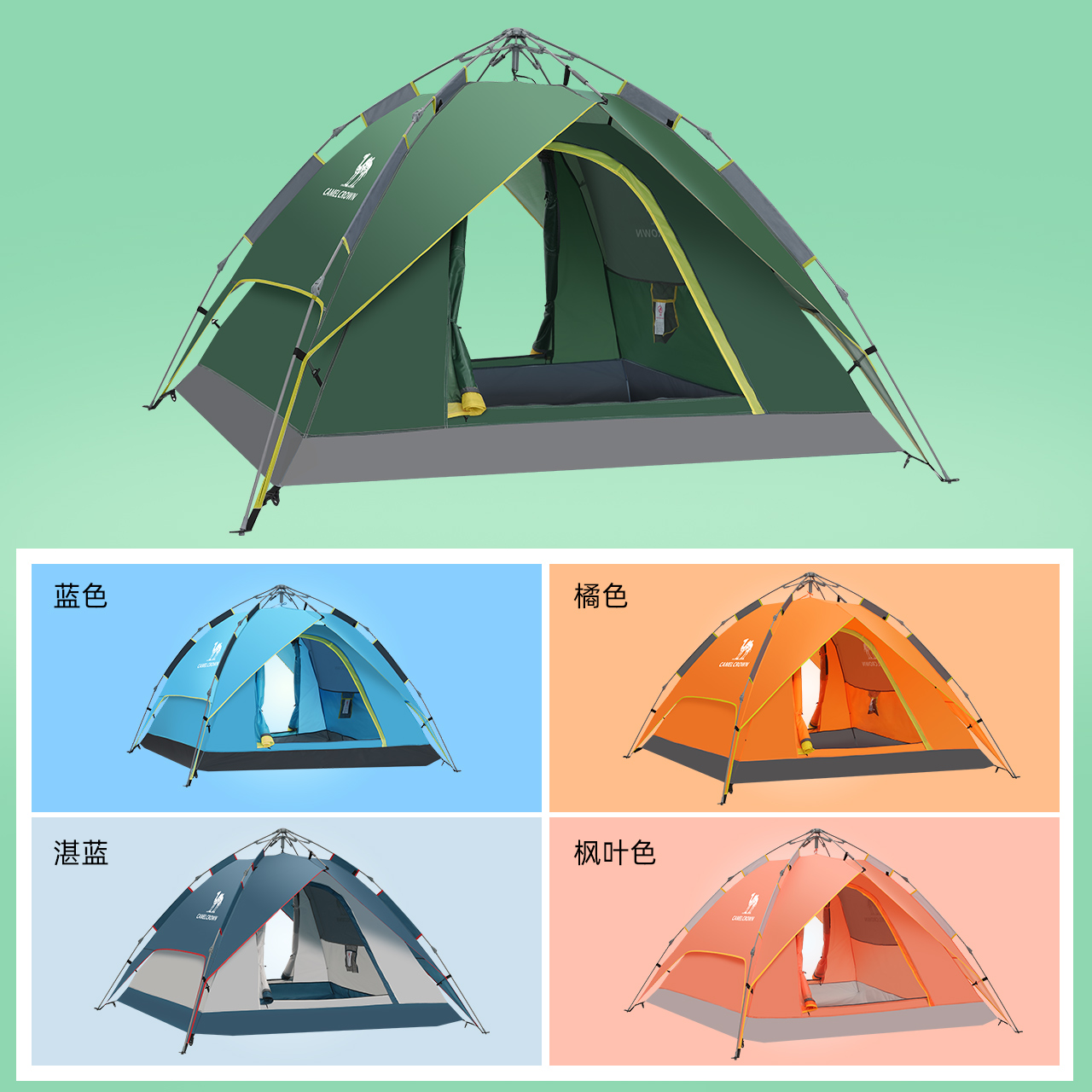 Camel outdoor tent New family outing double door tent 3-4 people single layer elastic pressure automatic sunscreen tent